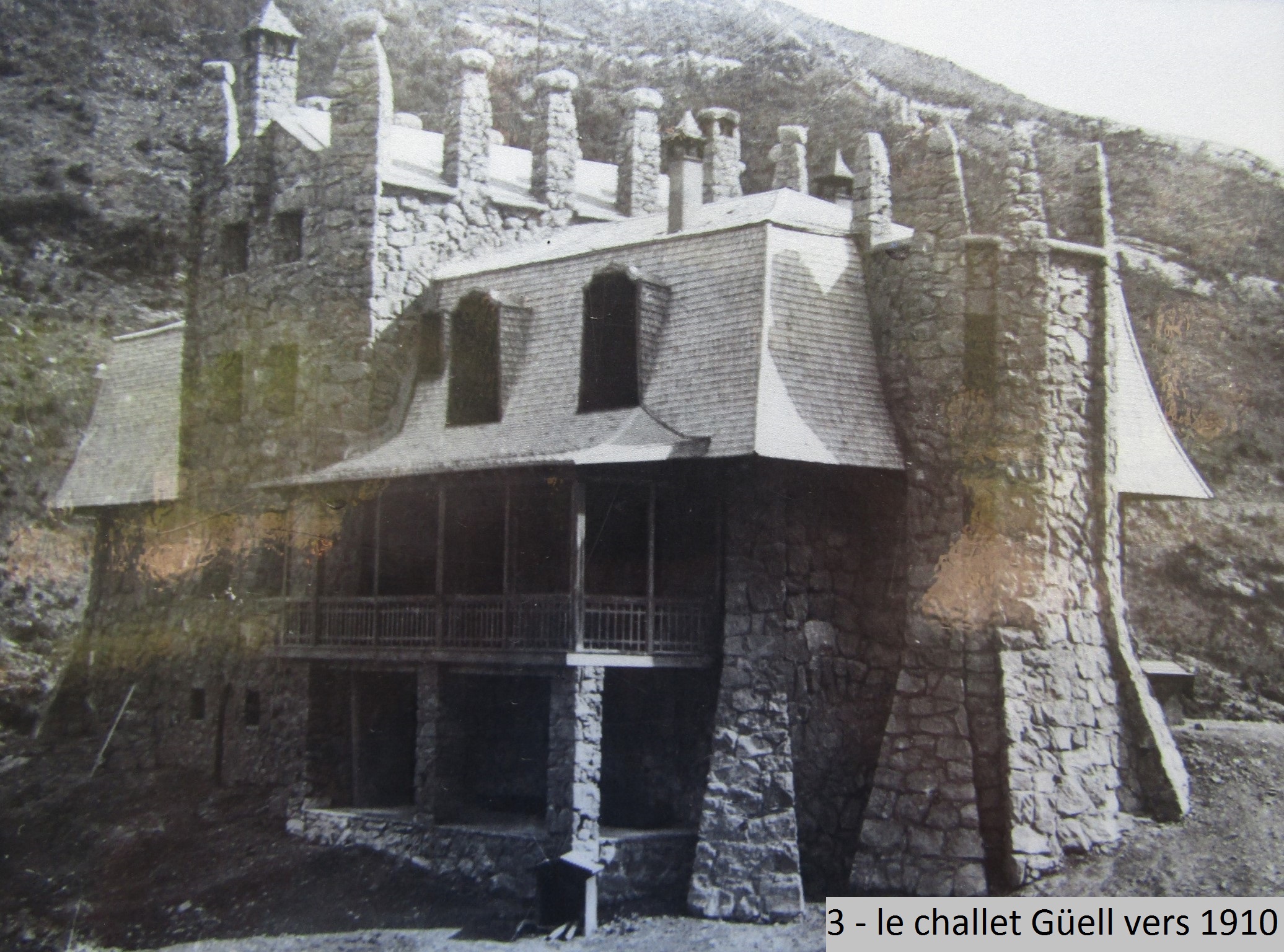 – Le chalet Güell (V), construction en pierre locale de style moderniste, œuvre des architectes Lluis Homs Moncussi et Eduardo Farrès Puig. C’était l’habitation de la Direction lorsqu’elle était présente sur le site, et un lieu d’accueil pour les invités importants.