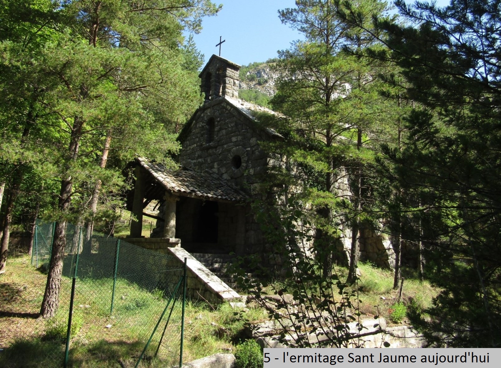 – Face au chalet, l’ermitage Sant Jaume (V), petite chapelle construite en 1924 au style inspiré des églises romanes pyrénéennes.